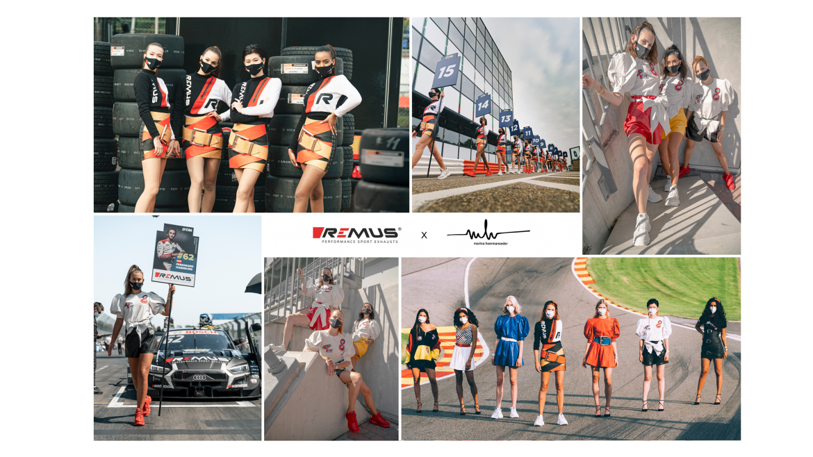 REMUS is an Austrian manufacturer of highest class sports exhaust systems, who has been an official series and development partner of the DTM (German Touring Car Masters) since the beginning of 2018. This year REMUS has contributed to the DTM in a very special way. In an exclusive cooperation with Marina Hoermanseder, MH and REMUS outfitted the REMUS Power Girls for the season 2020. One focus of this cooperation was to improve the image of the “Grid Girls“. For this purpose it was very important for Marina Hoermanseder and REMUS that the girls wear empowering outfits. Due to this we decided that the name “Grid Girls“ doesn’t fit to this image anymore, so it was only obvious that we would change the name to “Power Girls“. For these races, the 18 girls were dressed in new exclusive outfits every weekend. After the final race on Sunday November 8th, 2020, the individual pieces of this cooperation will be auctioned.