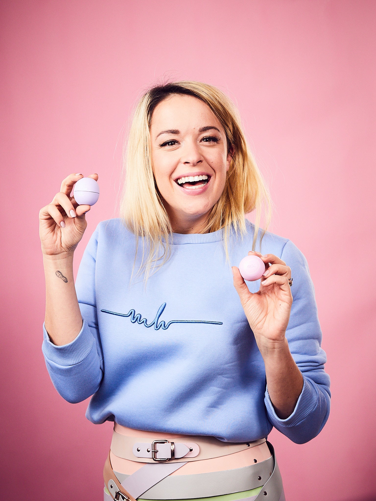The round balls have long convinced the internationally renowned designer, who is known worldwide for her extraordinary designs: “eos is my favorite lip care! Natural ingredients are indispensable for me. The colorful lip balms are one of my beauty must-haves, because beautiful, well-groomed lips round off every outfit. "(Marina Hoermanseder)