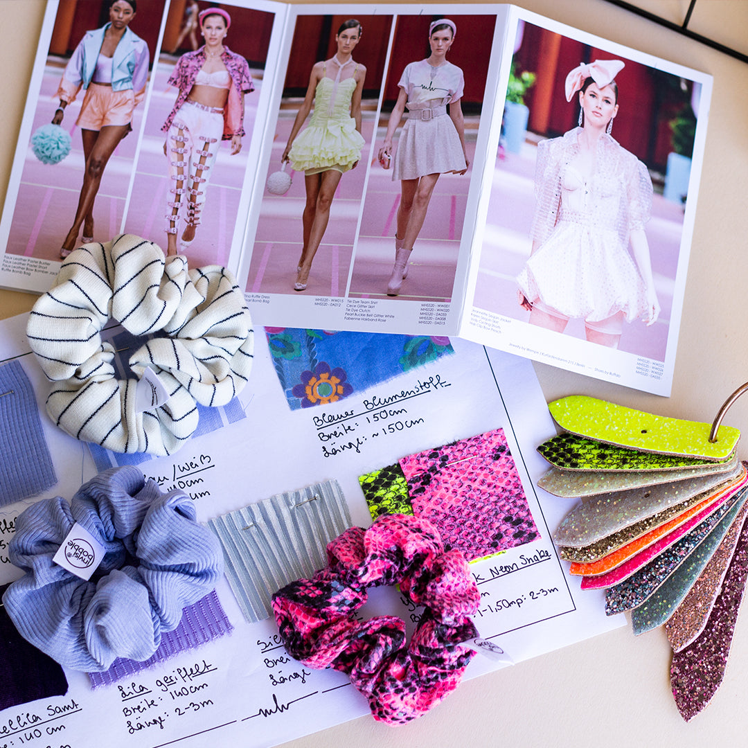 Marina Hoermanseder wants to set an example for sustainability in fashion and therefore presents the limited MH x invisibobble scrunchie collection. What makes this scrunchie collection so special? The answer is upcycling! The various sprunchie sets consist of fabrics from past Marina Hoermanseder collections - they impress with their sustainability and unique style. The scrunchies are also an eyecatcher in Marina’s signature hair style, the palm tree. You can style your hair as well with various invisibobble x MH sprunchies now.